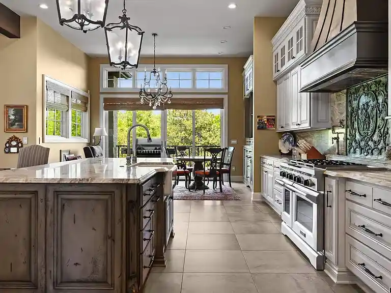 The main level features a lavish master suite with his & her baths, walk-in closets, and a luxury shower. Vaulted ceilings, a gas fireplace, and a gourmet kitchen with panelled appliances and pot filler elevate everyday living. Upstairs, two additional bedrooms with built-in bunk beds and a kitchenette offer flexibility and comfort. Down below, the walk-out basement includes two more master suites, radiant flooring, a bar, safe room, and hidden storage areas—all leading out to the patio.