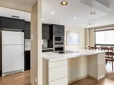 Discover urban living at its finest in this beautifully updated Beltline Calgary condo. With 2 bedrooms and 2 bathrooms across approximately 1,047 sq ft, this unit blends contemporary upgrades with thoughtful design. The open living and dining areas feature laminate plank flooring and large west-facing windows that flood the space with natural light. A modern kitchen includes a central island, ample cabinetry, and a walk-in pantry. The master bedroom offers dual closets and an ensuite bathroom, while the second bedroom or den is flexible in use. In-suite laundry and a gated covered parking stall add to the convenience. Just steps to 17th Avenue’s restaurants, shopping, transit, and the Bow River pathways—this home offers both comfort and a prime location.