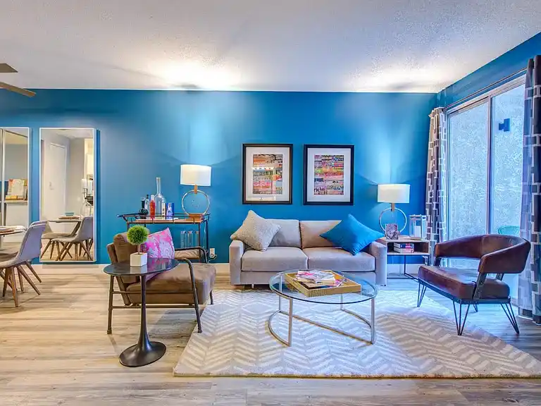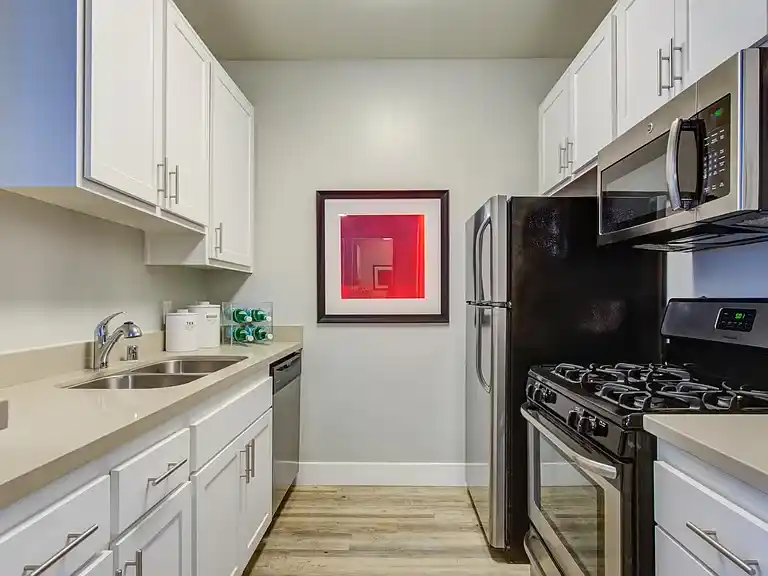 The apartments themselves surprise people – they’re not just another cookie-cutter LA box. The granite counters and stainless steel are nice, but it’s the custom cabinets with their smart storage and the actual working fireplaces that make this feel like a home. My one-bedroom has these high ceilings that make the space feel so much bigger than you’d expect.